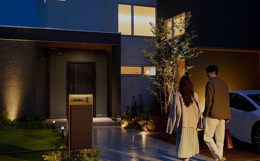 ○夜は玄関灯・ポーチ灯を自動点灯で在宅感を演出